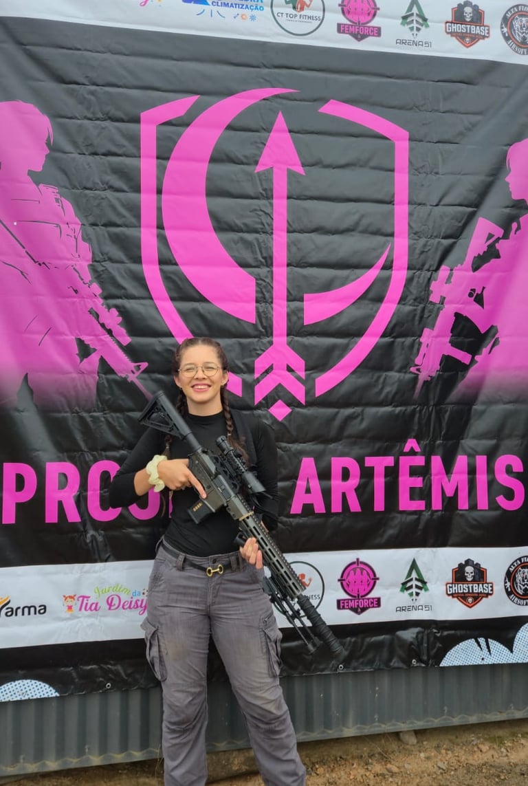Sua atuação representa força, disciplina e comprometimento, contribuindo diretamente para a formação, inclusão e fortalecimento da presença feminina no airsoft tático em Alta Floresta e região.